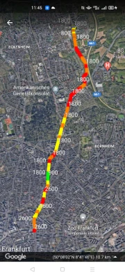 The Cell Compass always points to the Best Server cell when moving (GPS) if it is included in the CLF. With a tap on the arrow, the seat direction can be changed to the direction of travel, e.g. when you sit in a train. In addition to the direction, the distance to the cell as well as the current speed and the GSM accuracy are displayed.