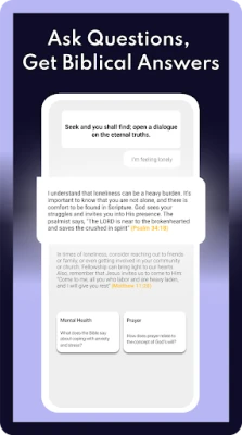 In today’s world, stress and mental health challenges are part of everyday life. Bible Chat is designed to help you find comfort and encouragement through the teachings of The Holy Bible. The app’s features such as daily Bible verses or spiritual journaling can serve as tools for grounding yourself and uplift your faith. For those walking a long path of faith, the app provides a convenient way to access familiar Christian teachings, daily prayer, and verses.