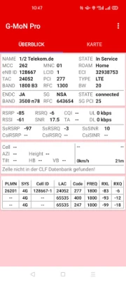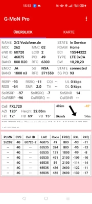 With G-MoN Pro, all available cell data and measured values in 5G NSA and SA, 4G, 3G and 2G mobile networks can be clearly displayed and graphically displayed. The details of this data depend on the smartphone manufacturer and the Android version.