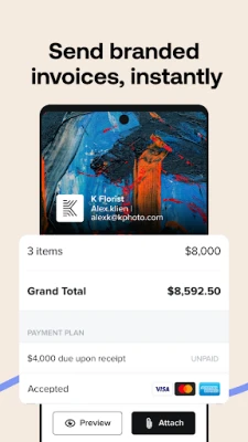 • All-in-one invoice, contact, & payment
