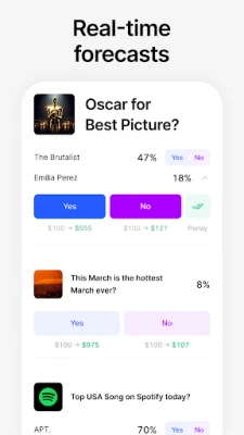 It’s like trading stocks - but instead, you’re trading on events you know about. Simply predict whether an event will happen or not, and make money if you’re right.