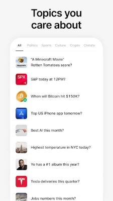 Join 5M+ users and trade thousands of markets, including finance, politics, weather, culture, and more. Make money 24/7 on the simplest and fastest markets available!