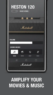 After spending over 60 years mastering the art of sound, we know that the only right way to listen to music, is your way. That’s why the Marshall app has a variety of features that let you customise your HESTON TV- soundbar experience to your personal taste. The app will guide you through initial setup, perform room correction and adjust the sound modes settings to find perfectly balanced Marshall signature sound to match the power of your playlists, movies or TV shows. Receive Over-the-Air updates to keep your HESTON soundbar up to date without ever lifting a finger.