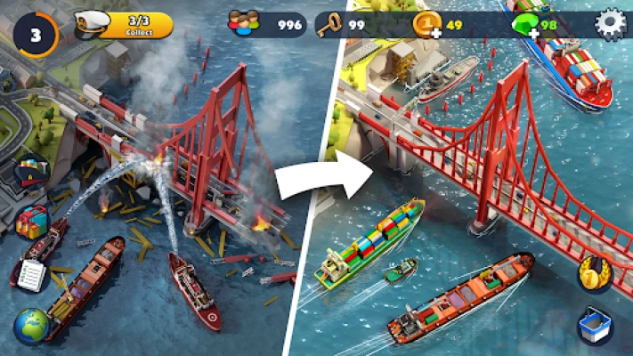 ▶ Enhance your port city and build bigger and better transport facilities and docks to fit more ships