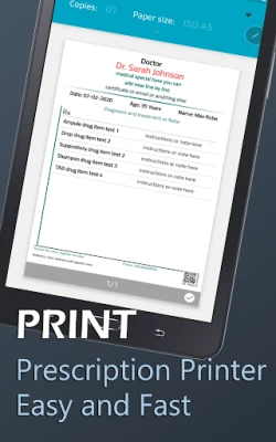 - Formal design of the prescription with the ability to control the Doctor information and the shape and colors of the prescription.