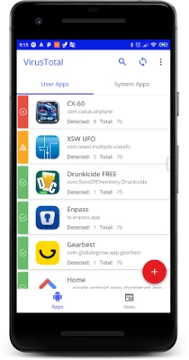 In this new version, in addition to analyzing all installed applications and to upload them if they are not in Virustotal, any file or url can be analyzed either from the application itself or another application.